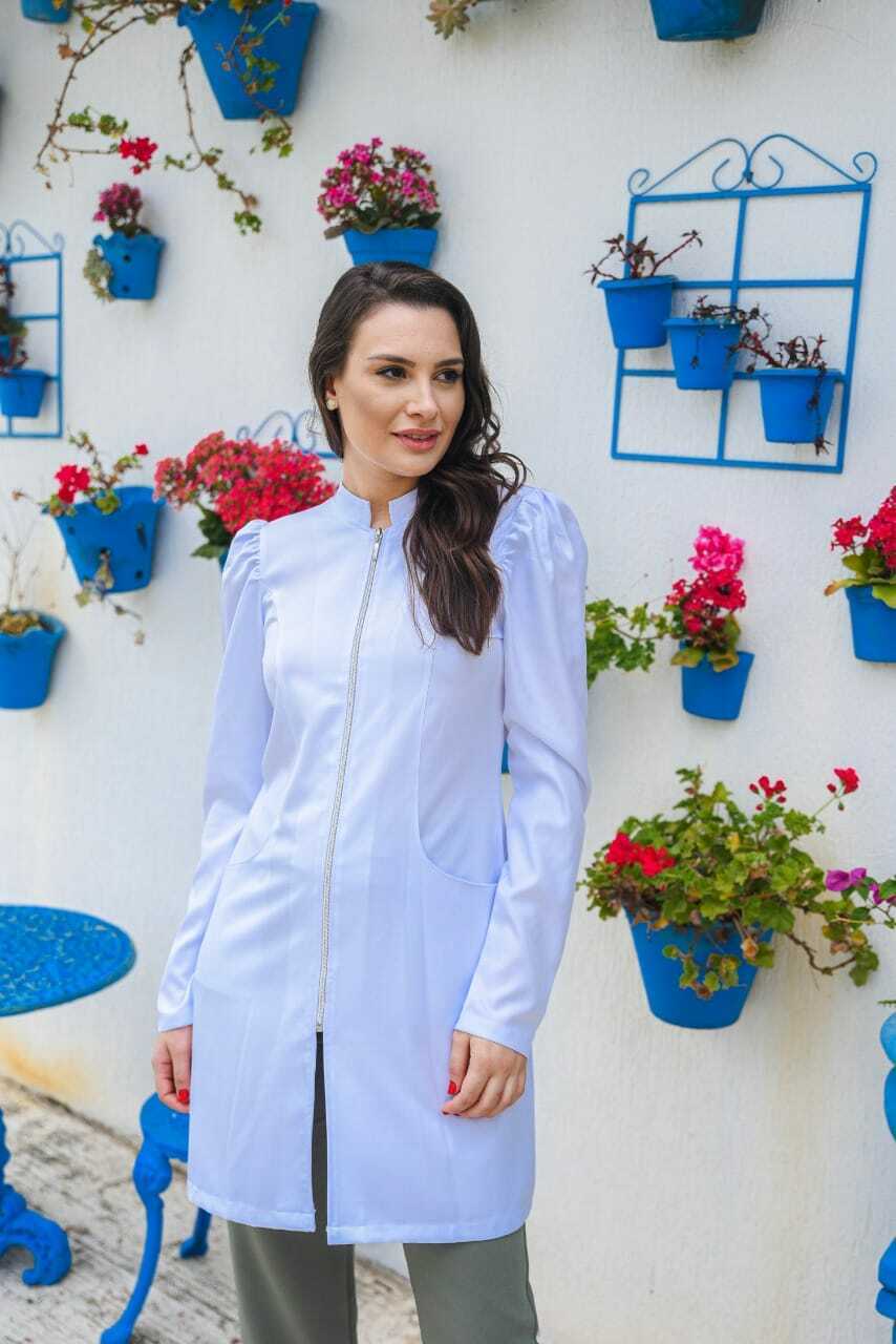 JALECO MANGAS BUFANTES GOLA PADRE ACINTURADO ZIPER PRATA CONFECCIONADO NO TECIDO GABARDINE DIVERSAS CORES E TAMANHOS PP AO PLUS SIZE